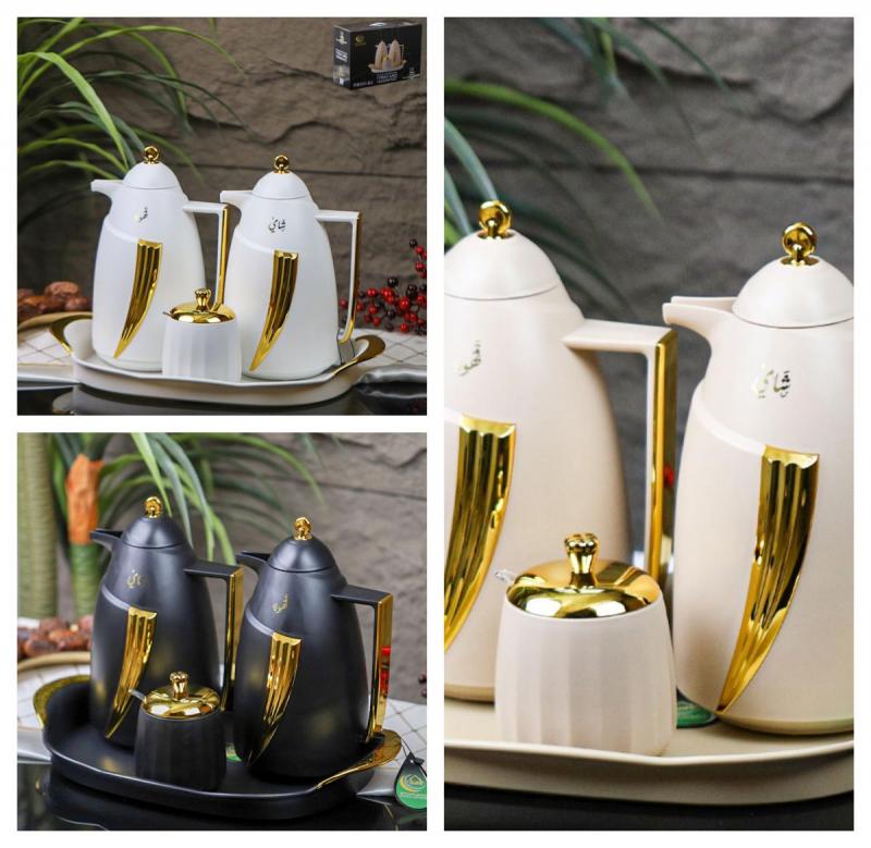طقم ترامس /2 + صينية و سكرية عضم مذهب 3 لون RB001-S4