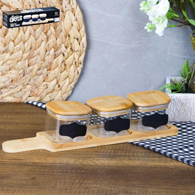 طقم سكريات 3 قطع على ستاند خشب بامبو JML-D-027