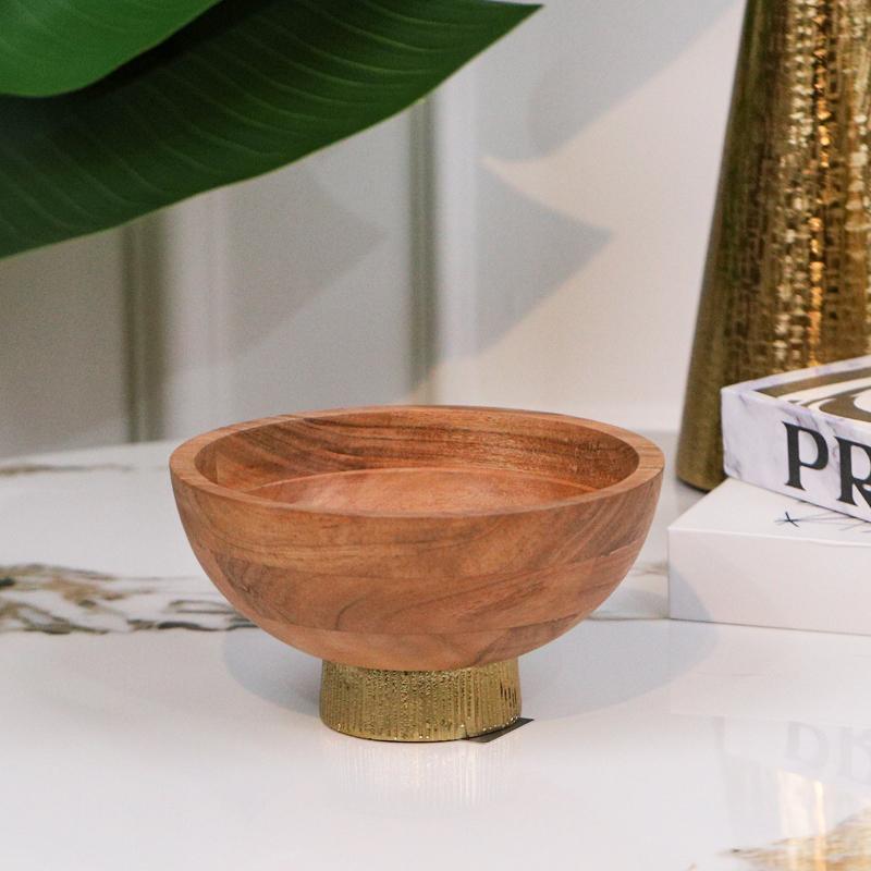 جاط فواكه خشب هندي مدور جور قاعدة نحاس 20*10.5سم 58758