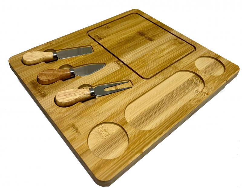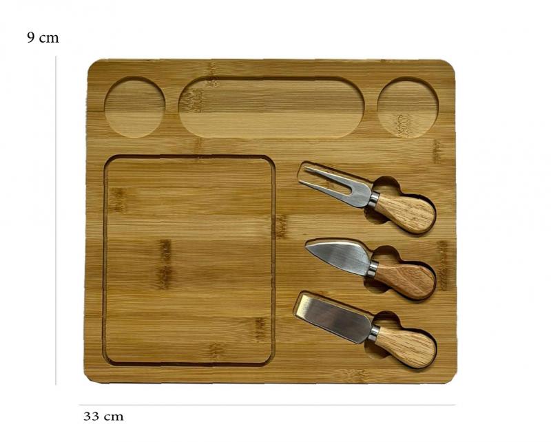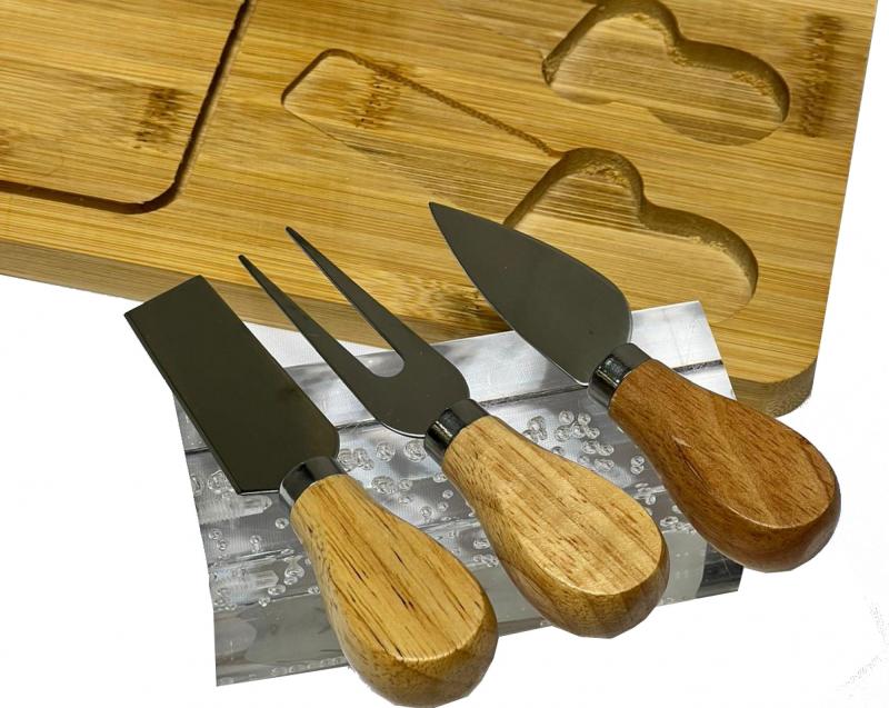 طقم /4 لوح فرم مستطيل خشب بامبو +3 ادوات تقطيع اشكال 4-2958