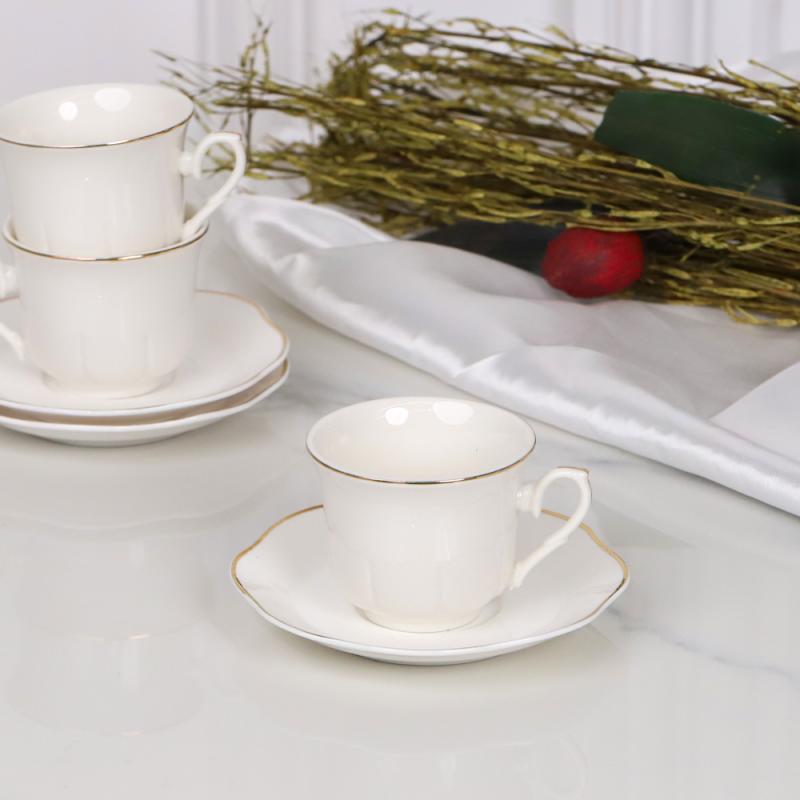 طقم 12+12 فناجين قهوة بورسلان ابيض وردة حز ذهبي A.C.D7221