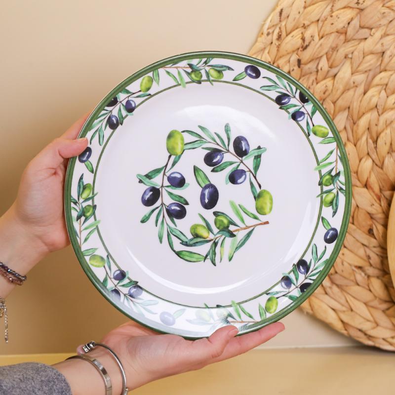 صحن سفرة ميلامين ابيض نقشة الزيتون 10.5" DW1011-26