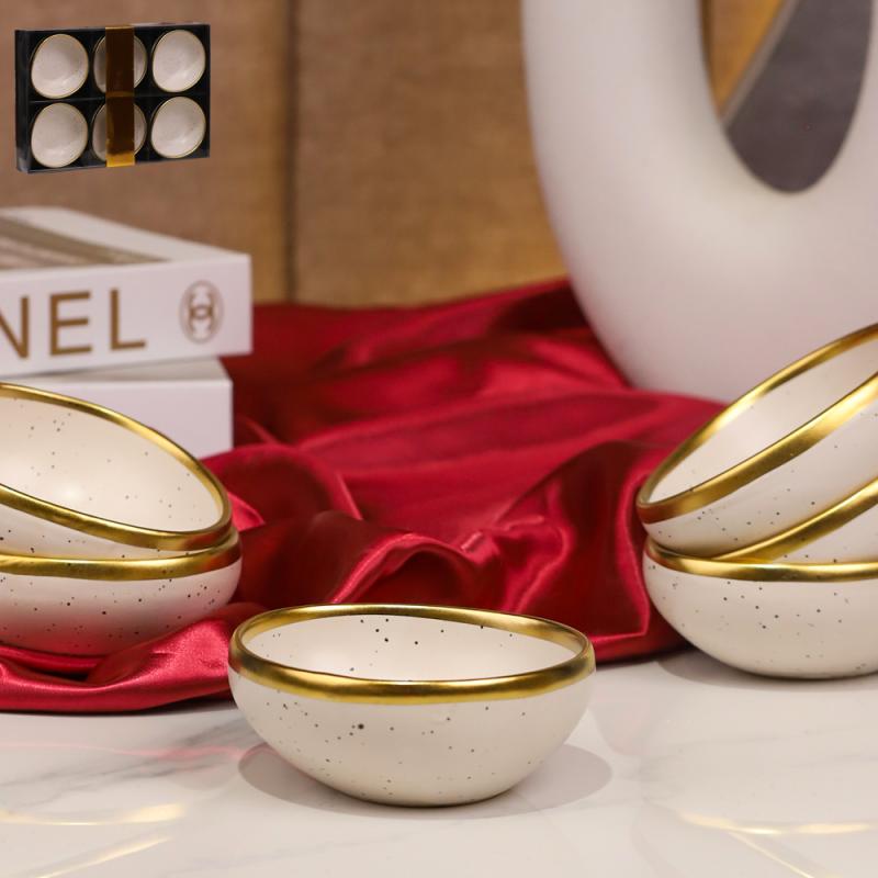 طقم صحون مكسرات/6 بورسلان بيج منقط حز ذهبي BDX6-8