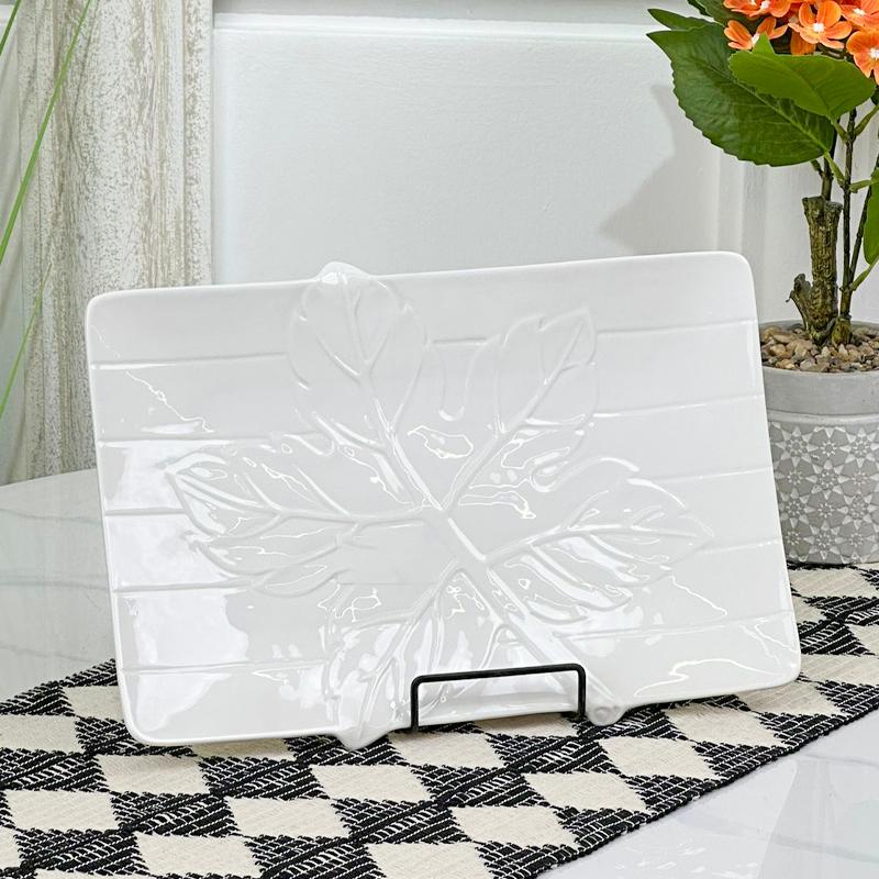 طقم جاط شكل وردة 29*13سم + صحنين مدور برجل ابيض / بيج ثقيل HT5941-3