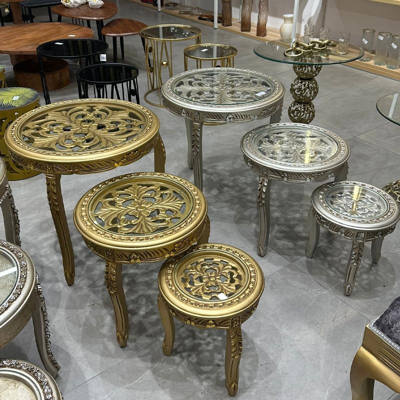 طقم سكملات مدور مصري 3 قطع مزخرف مذهب وجه زجاج مفتوح#2
