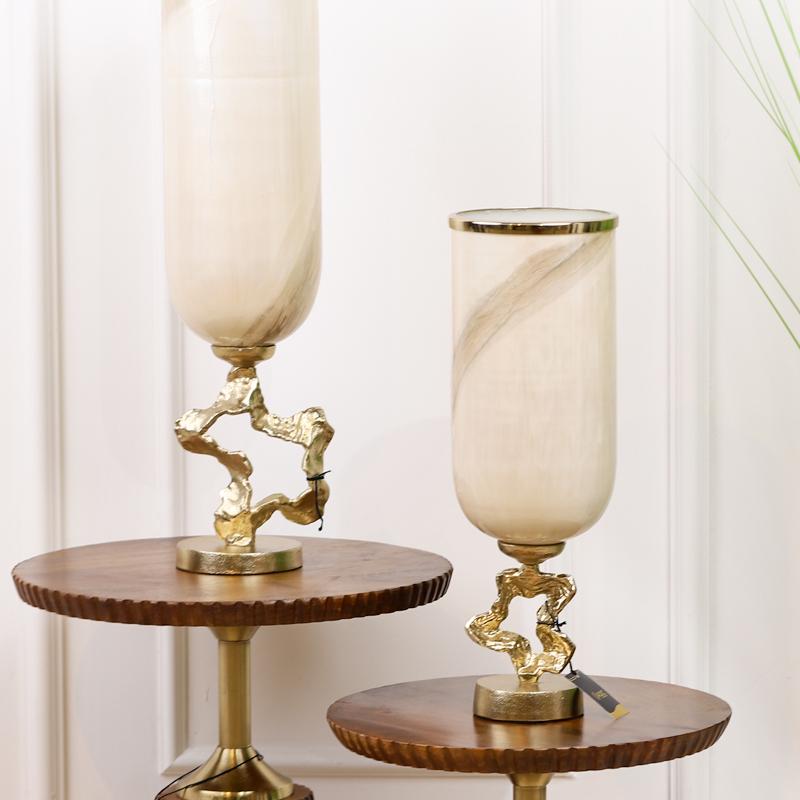 شمعدان عميق زجاج ماربل بني 15*61سم رجل ديكور معدن هندي مذهب 9G-02349 SPL MW