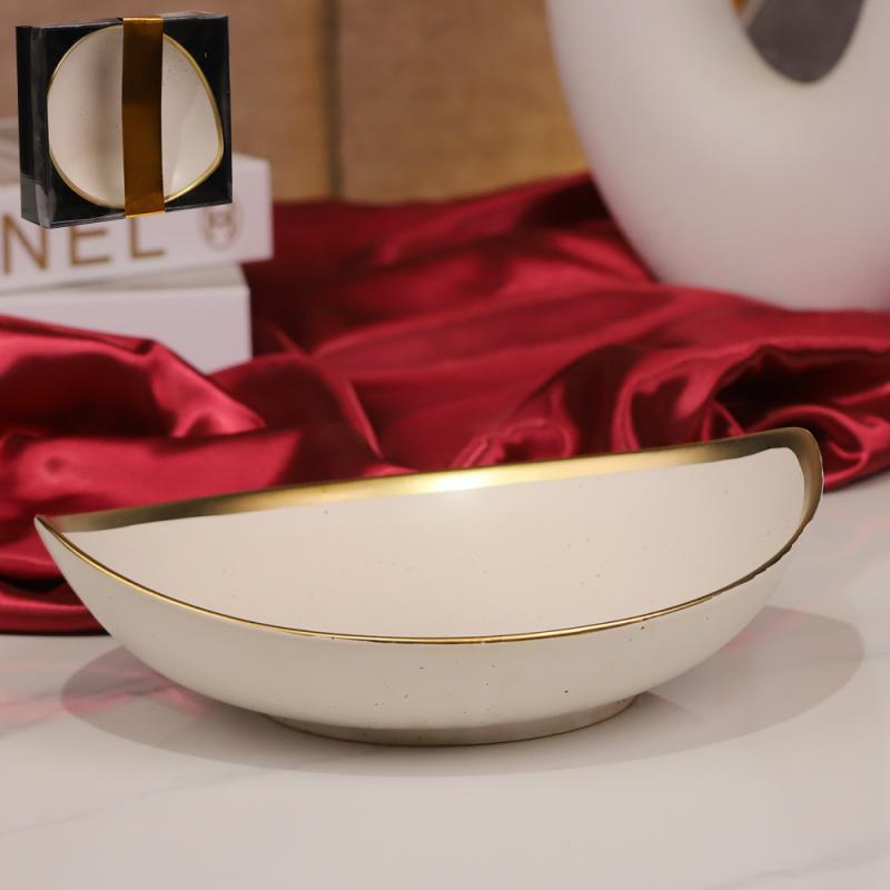 طقم صحون مكسرات/6 بورسلان بيج منقط حز ذهبي BDX6-8